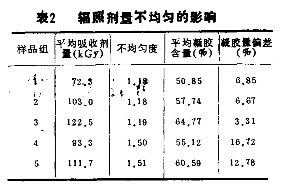 表2 輻照劑量不均勻的影響